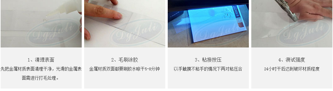 3、聚厲牌JL-3231塑料專用UV膠水在使用之前請(qǐng)稍微搖動(dòng)在被黏塑料以表面均勻涂抹UV膠水,并馬上把黏結(jié)面對(duì)準(zhǔn)粘合到一起并壓實(shí)用專用UV燈照射60-120秒左右即可達(dá)到高強(qiáng)度。
